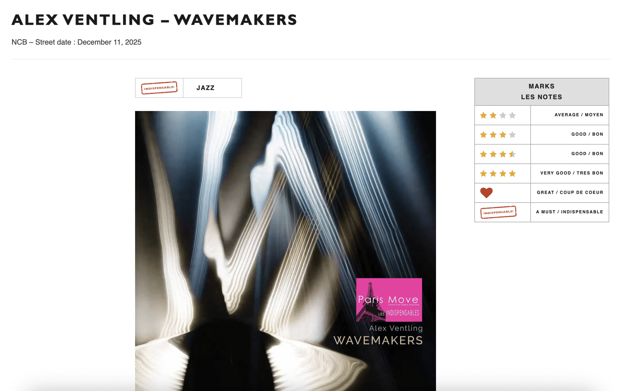 “a quartet perfectly in sync and effortlessly riding the waves Ventling composes… feels closer to a soundtrack experience”