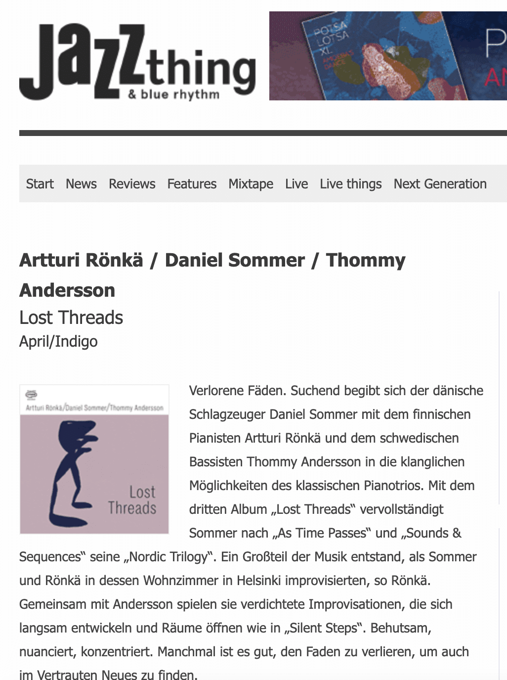 “A recommendable record for trio jazz connoisseurs who want the Nordic – but have grown out of the transparent and airy.”