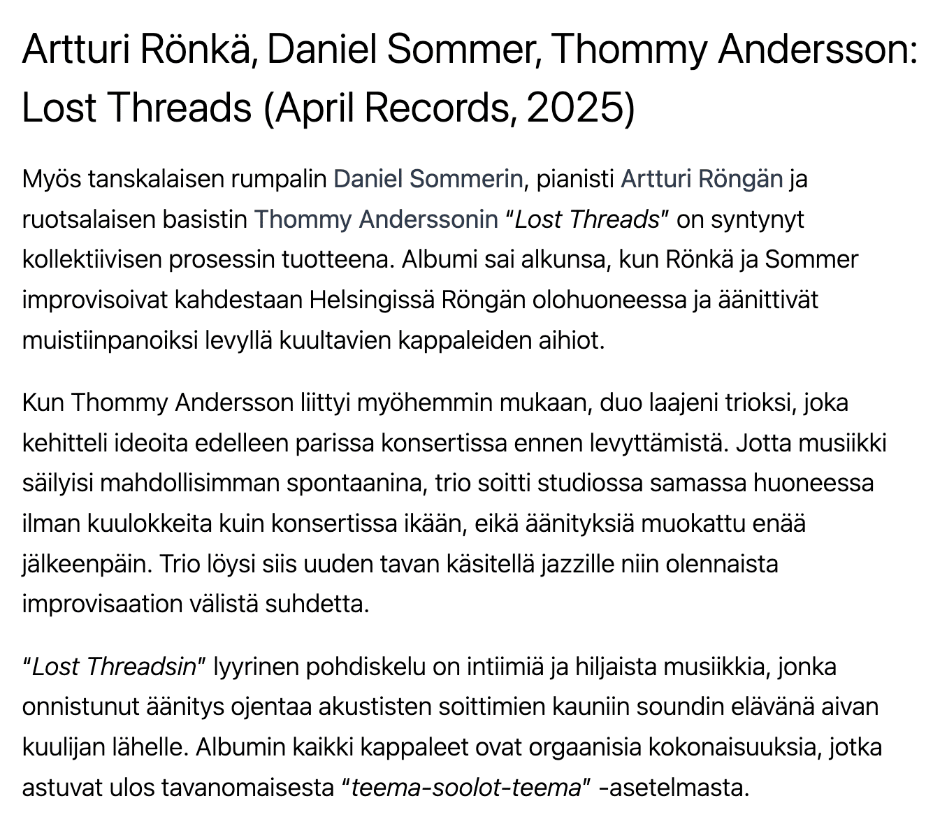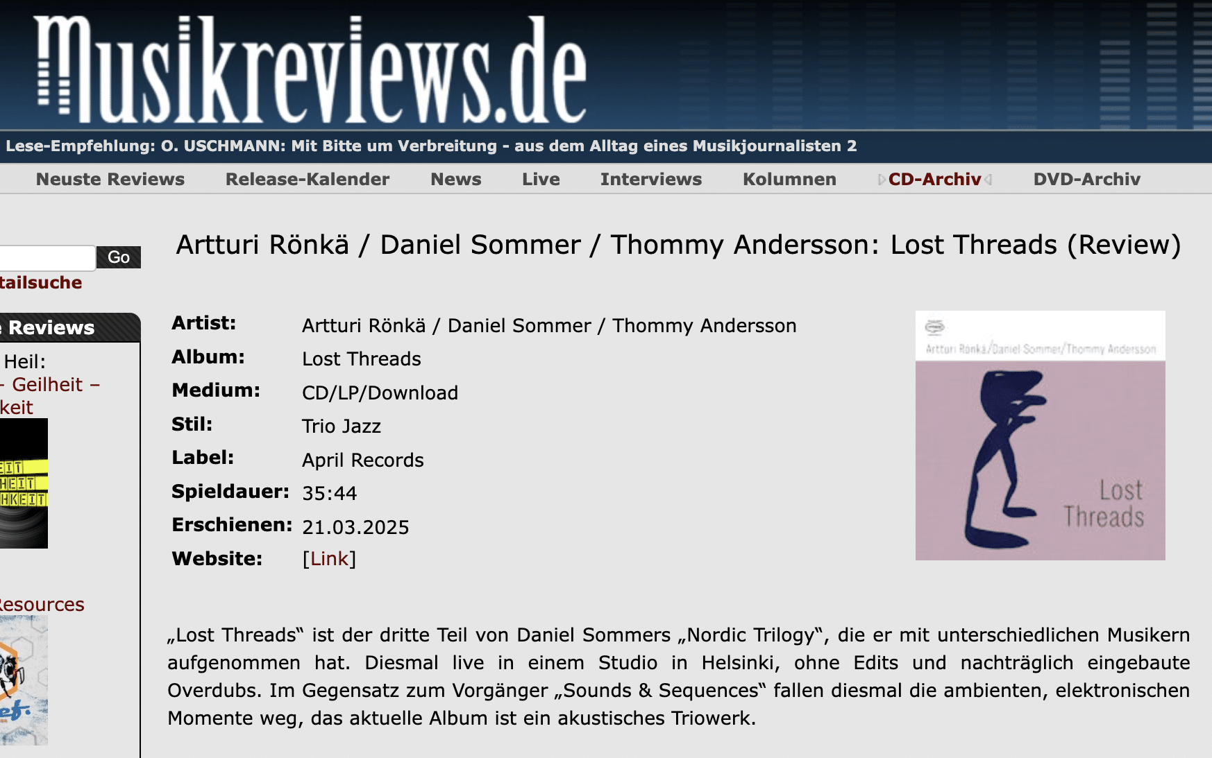 Arturri Rönkä / Daniel Sommer / Thommy Andersson | Lost Threads | March 21, 2025