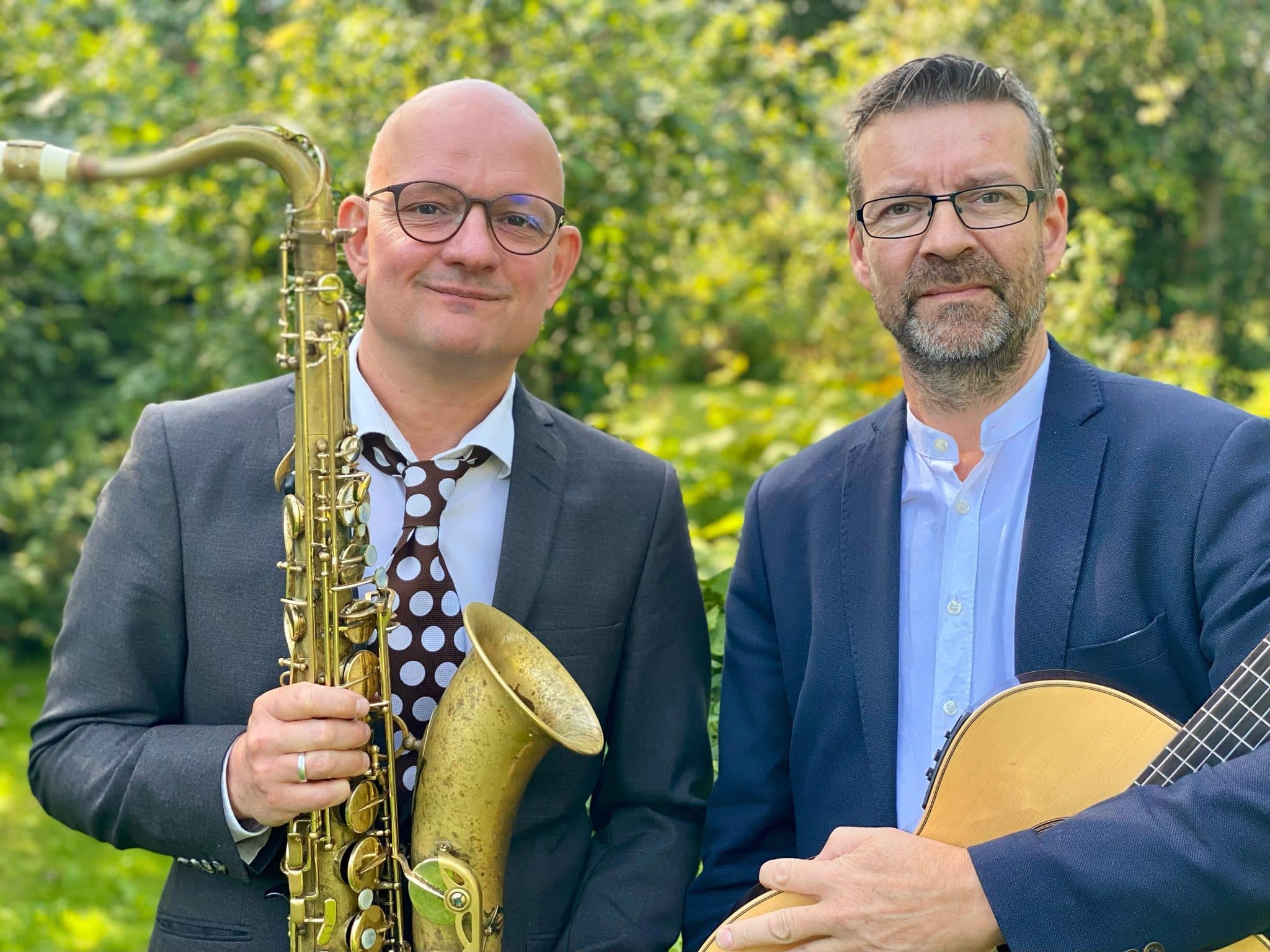 Led by saxophonist Niels Oldin and guitarist Jakob Frandsen, the duo first met at the Royal Conservatory in The Hague in 1996. Over the decades that followed, their lives and careers repeatedly intersected: returning to Denmark, teaching at the same folk high school on the island of Ærø, sharing an apartment in Copenhagen, and later leaving the city around the same time to settle elsewhere with their families. That shared history has gradually distilled into a musical language marked by warmth, playfulness, and an unusually natural sense of dialogue.