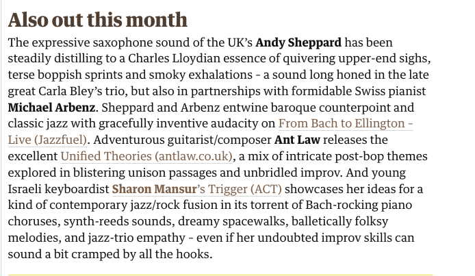 “There is a richness and sensitivity to their interaction that feels natural as they shift seamlessly through differing moods, enriching with subtle shifts of tone, making this an evocative and enjoyable live session.”