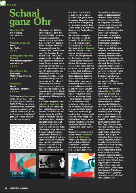 Following the success of his acclaimed solo albums Reflections of D (a tribute to Duke Ellington) and Classicism – A Point of View, Arbenz turns his focus to the intimacy and freedom of the duo format. In Sheppard, he finds an ideal partner: a singular voice in British jazz whose sound is as imaginative as it is grounded in jazz tradition.
