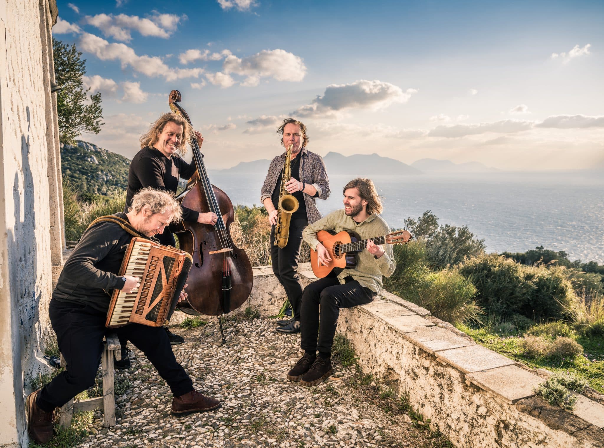 Quadro Nuevo consists of Mulo Francel (tenor saxophone, clarinet, mandolin, whistle), Andreas Hinterseher (accordion, bandoneon, vibrandoneon), Didi Lowka (double bass), and the ensemble’s newest member, guitarist Philipp Schiepek. Together, they embark on a search for the “simple life,” an unhurried, contemplative way of life that heightens awareness of what truly matters. Far from tourist crowds and global politics, they create music that is warm, elemental, and timeless – born from the openness and serenity of the Aegean.